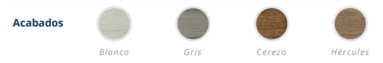 • Acabados disponibles: Blanco, Gris, Cerezo, Hércules