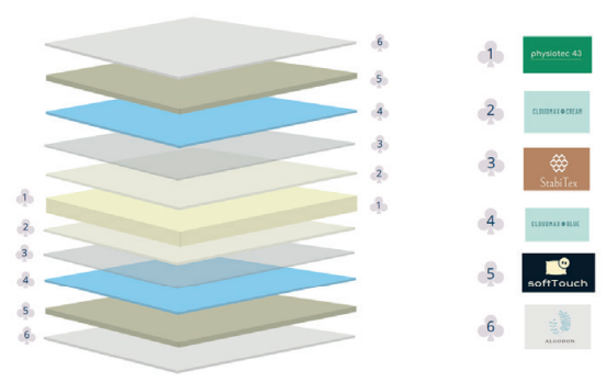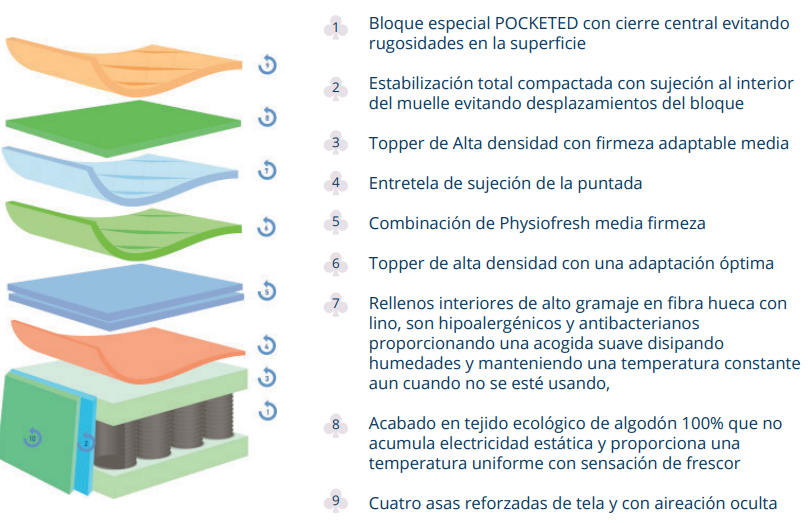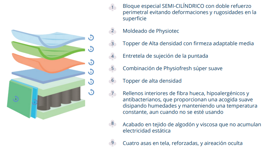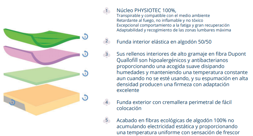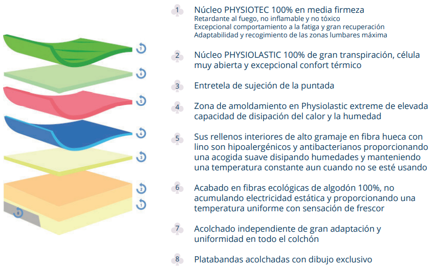 Núcleo de espuma Physiotec con tecnología exclusiva ASPOL