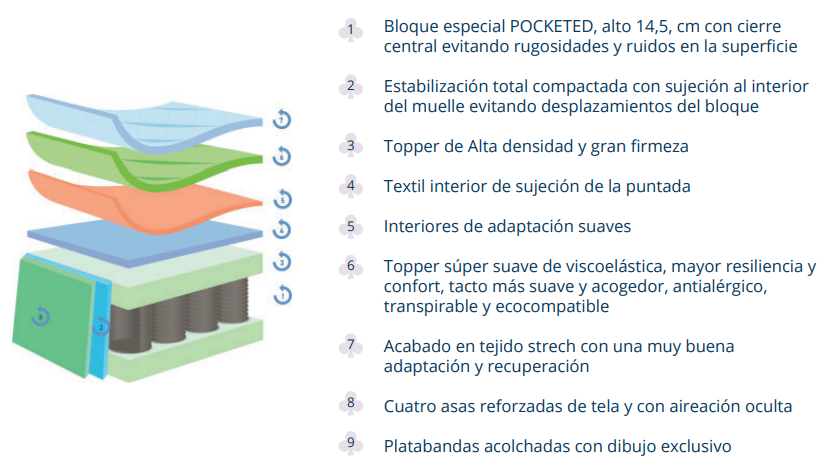 Núcleo de muelles ensacados con 5 zonas de confort para adaptación personalizada
