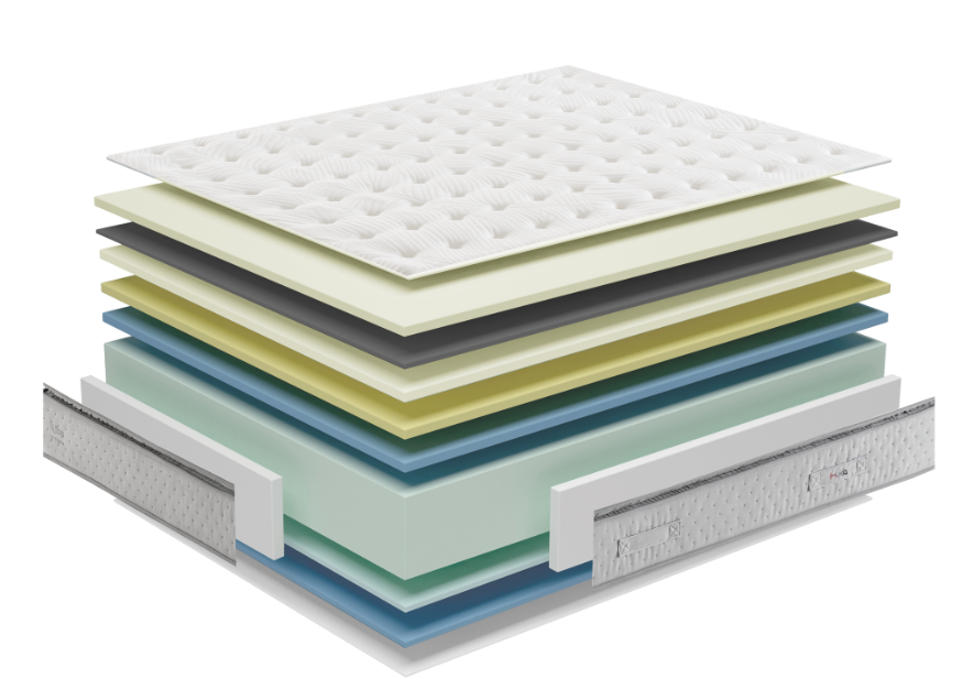 - Refuerzo perimetral de alta densidad que mejora la durabilidad y el soporte en todo el colchón